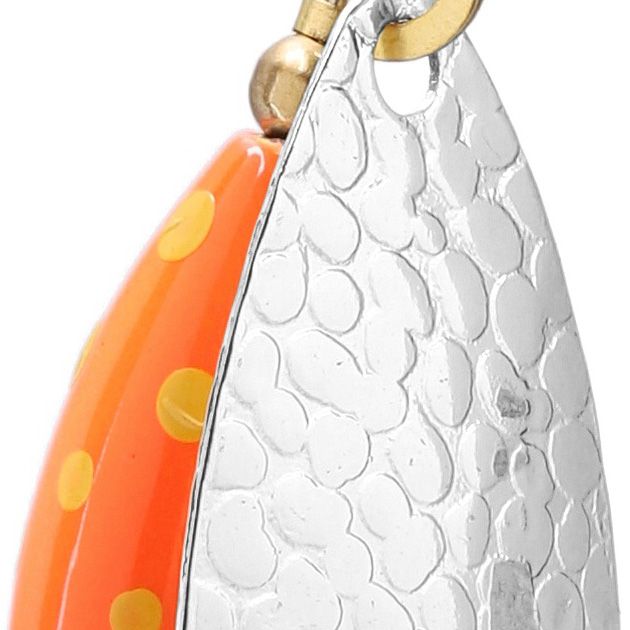 Вращающаяся блесна с раскрашенным сердечником и мухой на тройнике. Блесна для ловли форелевых и сиговых рыб может применяться и для охоты за щукой и судакой.